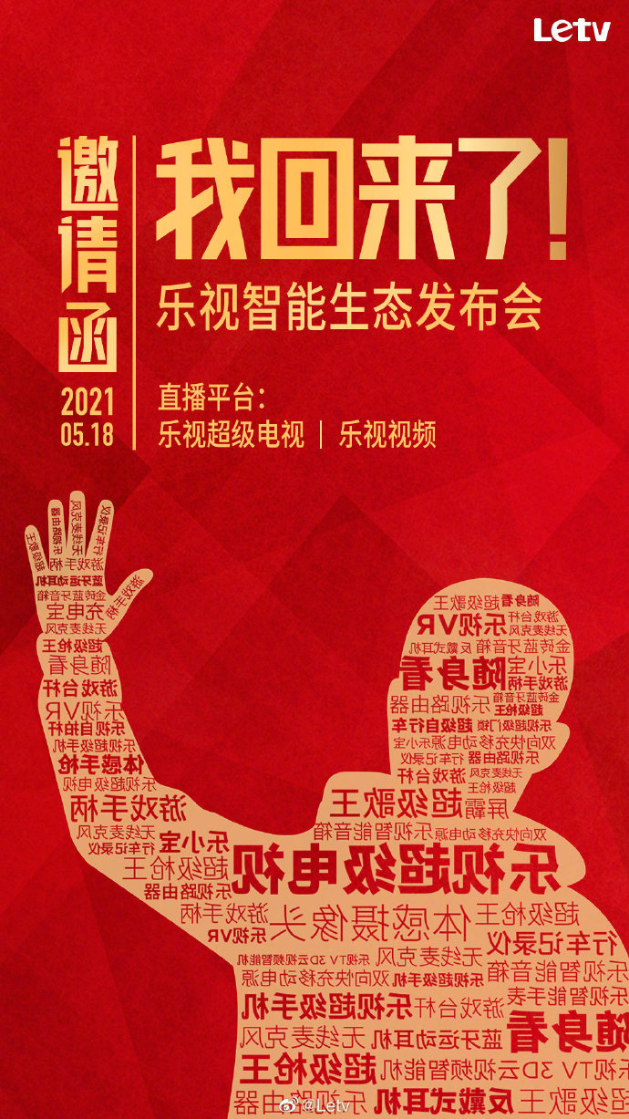 樂視今天發(fā)布邀請(qǐng)函,宣布將會(huì)在5月18日舉辦智能生態(tài)發(fā)布會(huì),將會(huì)通過樂視超級(jí)電視、樂視視頻直播。