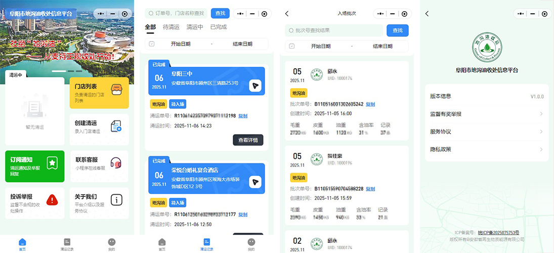 針對地溝油存在的問題和現(xiàn)象,“阜陽市地溝油收處信息平臺”應(yīng)運(yùn)而生,目的在于規(guī)范化收處,便于市場監(jiān)督、城管、環(huán)保等單位監(jiān)管,保證地溝油從產(chǎn)生單位到入場處置以及去向的透明化,可查、可視、可追溯。